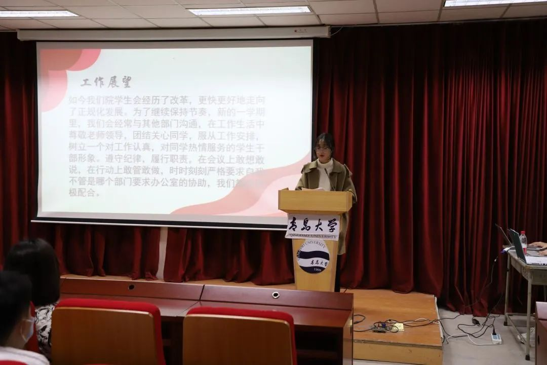 新葡萄官方网学生会秋季执行主席刘祉汝对学生会工作进行了介绍,对第三十一届学生会提出倡议,并对新加入的学生会成员给予鼓励。其中刘祉汝学姐提出“三个关系,一个热爱”,要处理好学生会内各部门间的关系、院内各学团组织间的关系以及校内各学团组织间的关系,秉持理想与热爱,践行责任担当。