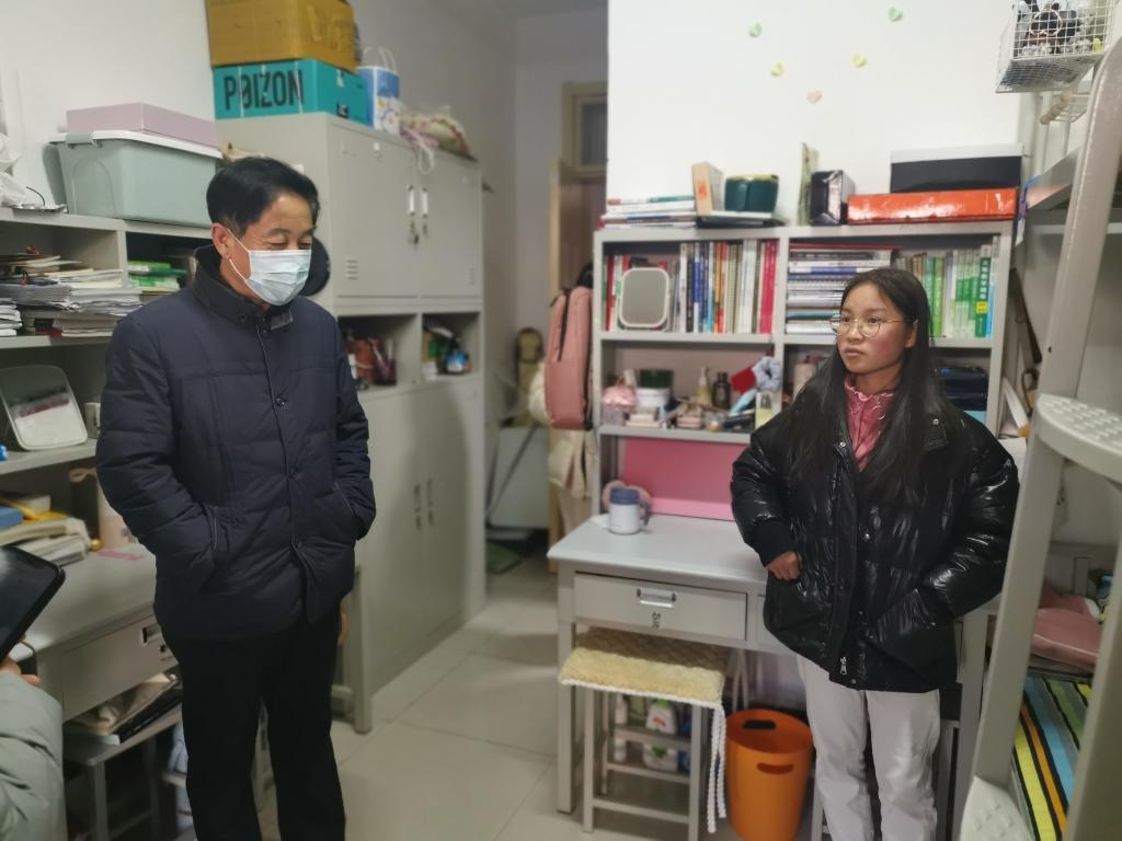 新学期开学伊始,为做好疫情防控期间学生开学返校情况和返校后的宿舍管理工作。2月20日,新葡萄官方网党委书记王功勇和各年级辅导员走访学生宿舍,看望新学期返校学生。