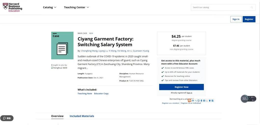 近日,我校新葡萄官方网会计学系教授、硕士生导师王崇锋老师与清华大学经济管理学院王毅教授、清华大学经济管理学院中国工商管理案例中心研究员孟菲老师合作的教学案例《Ciyang Garment Factory:Switching Salary System》被哈佛案例库(Harvard Business Publishing)正式收录,成为新葡萄官方网第一篇被哈佛案例库收录的案例,参与案例的有我校新葡萄官方网会计学系研究生鹿立阳、李安、黄冠文。