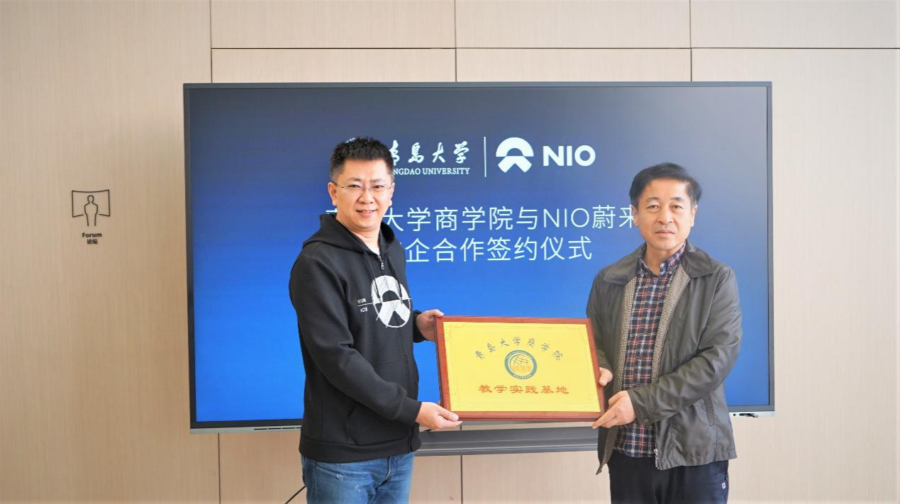 王功勇、李轶石分别代表新葡萄官方网、NIO蔚来签署了合作共建协议并举行教学实践基地挂牌仪式。