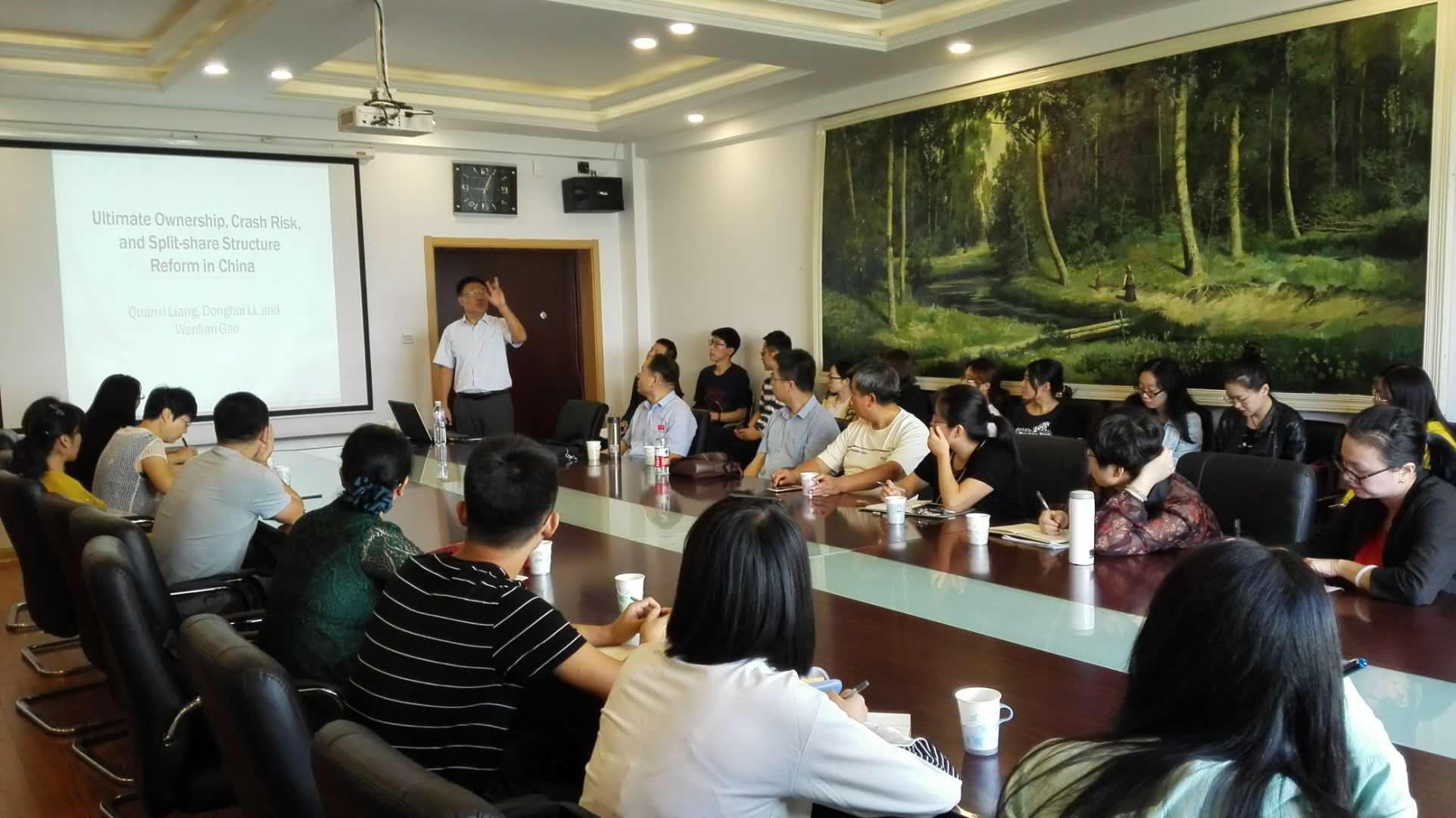 2018年9月27日上午9时,暨南大学管理学院会计系教授、博士生导师李东辉教授应邀在新葡萄官方网办公楼410进行了题为"Ultimate Ownership,Crash Risk,and Split-share StructureReform in China"的学术报告,新葡萄官方网老师及会计系研究生参加报告会。本次学术讲座为新葡萄官方网国家级人才引智推进计划暨“周五学术之夜”系列讲座第六十期。