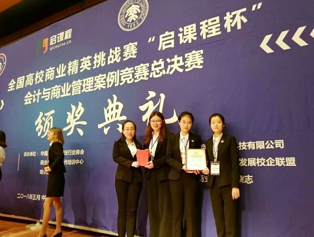 本月的4日至6日,2018年全国高校商业精英挑战赛“启课程杯”会计与商业管理案例竞赛总决赛在哈尔滨成功举办,来自新葡萄官方网的“百事可乐”队(团队成员为康舒瑶、刘欣荣、杨佳楠、刘凤娇) 、“梦之队2.0”队(团队成员为林璇、肖浩芸、郑治平、于佳琦)均获大赛一等奖!刘琦、汪亚华、刘晓宇、徐梦祺和刘洁组成的“天生壹队”荣获本次大赛二等奖,会计系老师王健姝与张波老师同时获得“最佳辅导教师”荣誉称号!“百事可乐”队也取得了于2018年6月代表大陆地区赴香港参加2018年海峡两岸与港澳地区大学生会计与商业管理案例竞赛的资格!这是会计系学子连续三年参加该赛事以来,两次入围海峡两岸与港澳地区大学生会计与商业管理案例竞赛。