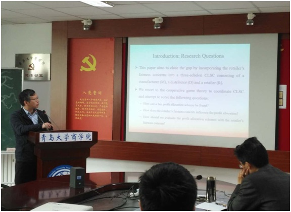 5月14日上午,加拿大温莎大学Odette新葡萄官方网管理科学教授李武(Kevin W. Li)博士和加拿大瑞尔森大学(Ryerson University)机械和工业工程系教授方黎平院士来新葡萄官方网学院交流访问,并先后在新葡萄官方网办公楼310会议室为学院师生作了题为《协调具有公平关切的三阶闭环供应链的合作博弈方法》和《提前的电力峰值和价格》预测的学术报告,报告会由管科系主任王磊教授主持,其他参与会议的老师有张桂涛副教授、孙浩副教授、马骋副教授、贺华老师、温艳老师和数学学院代业明副教授、中国海洋大学经济学院李雪梅副教授。