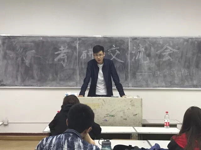 2018年5月8日晚7点,新葡萄官方网国际商务系考研交流会在东校区东院第四教学楼212举行。考入对外经贸大学的张奕鹤同学和考入中国海洋大学的陆洋同学分别上台分享经验。