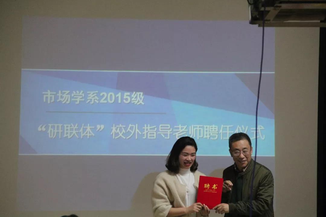 动员大会上举行了市场学系“研联体”成立仪式,高联考研课程部黄洪涛、数据分析部吴晶、校友李晨、李康伟、孙秋霓、刘婧等受聘为2015级“研联体”校外指导老师。“研联体”针对考研同学普遍存在的资源和支撑两大问题,通过引入优质考研指导资源,坚持互助、 辅助、 共享、 激励,努力探索专业老师指导、典型示范引导、考研机构辅导相结合的联系培养机制。
