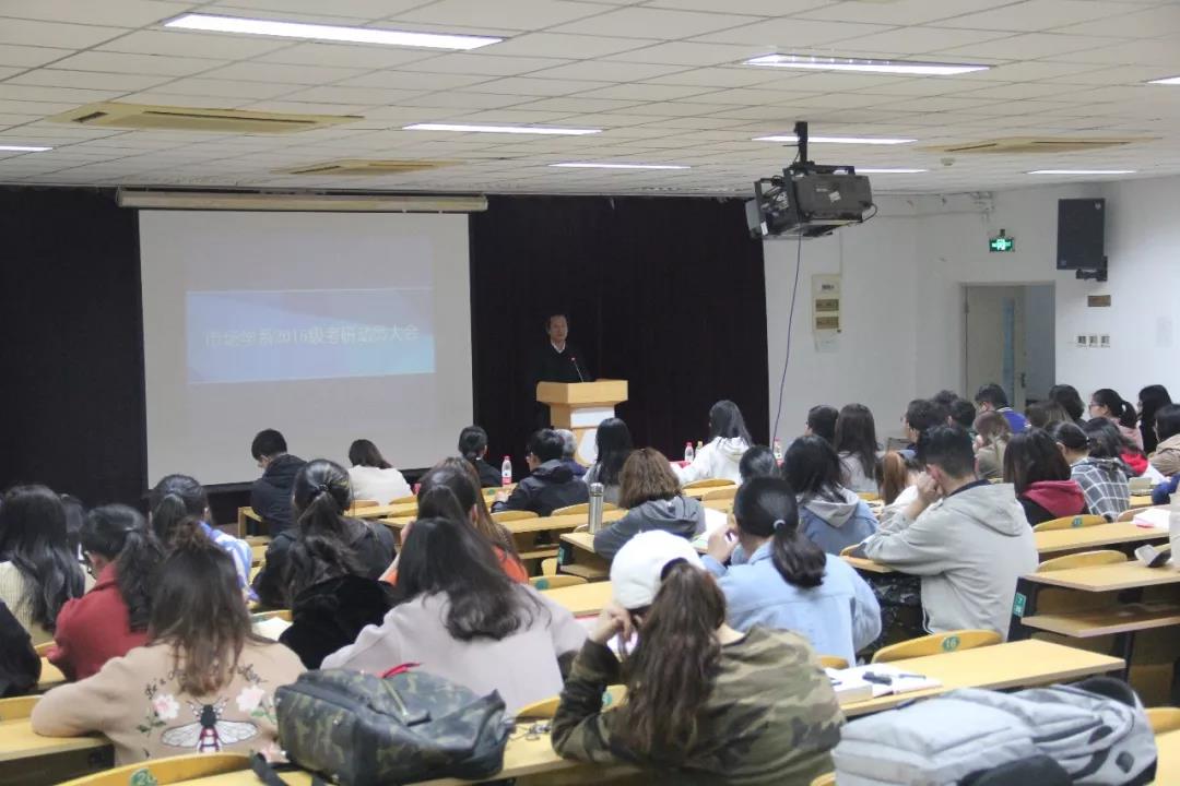 院党委副书记陈崇研总结学院近三年考研工作相关情况,分析了考研工作存在的问题,部署2019年考研工作目标,并从社会发展需要高层次人才、学院发展需要培养高层次人才、个人发展需要成长为高层次人才三个角度对学生考研工作进行了动员。市场学系主任王海宁、旅游地理学院王克稳老师分别从社会对人才的要求、考研对个人成长发展重要性、增强考研自信心等角度与同学们进行了交流。