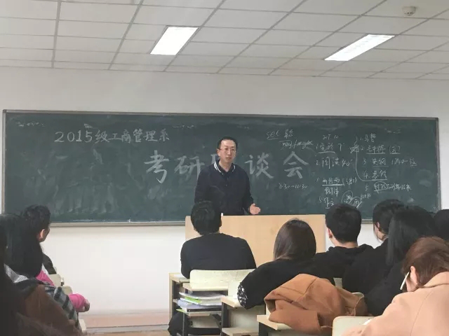 马伟主任代表工商管理系全体老师表示愿为大家考研提供最大的服务与支持。为贯彻实施“为大家服好务”的理念,马主任指出:一是建立“考研导师制”,通过老师同学们双向选择,实现点对点服务;二是设立“考研门诊”,通过建立微信群的方式,将老师们以及考过研、要考研的同学们加进来实现有问题第一时间解决、有资料第一时间分享。三是邀请外语学院老师为大家的考研英语助力,一对一为大家服务。同时提出“三定”的理念:定目标、定计划、定行动。