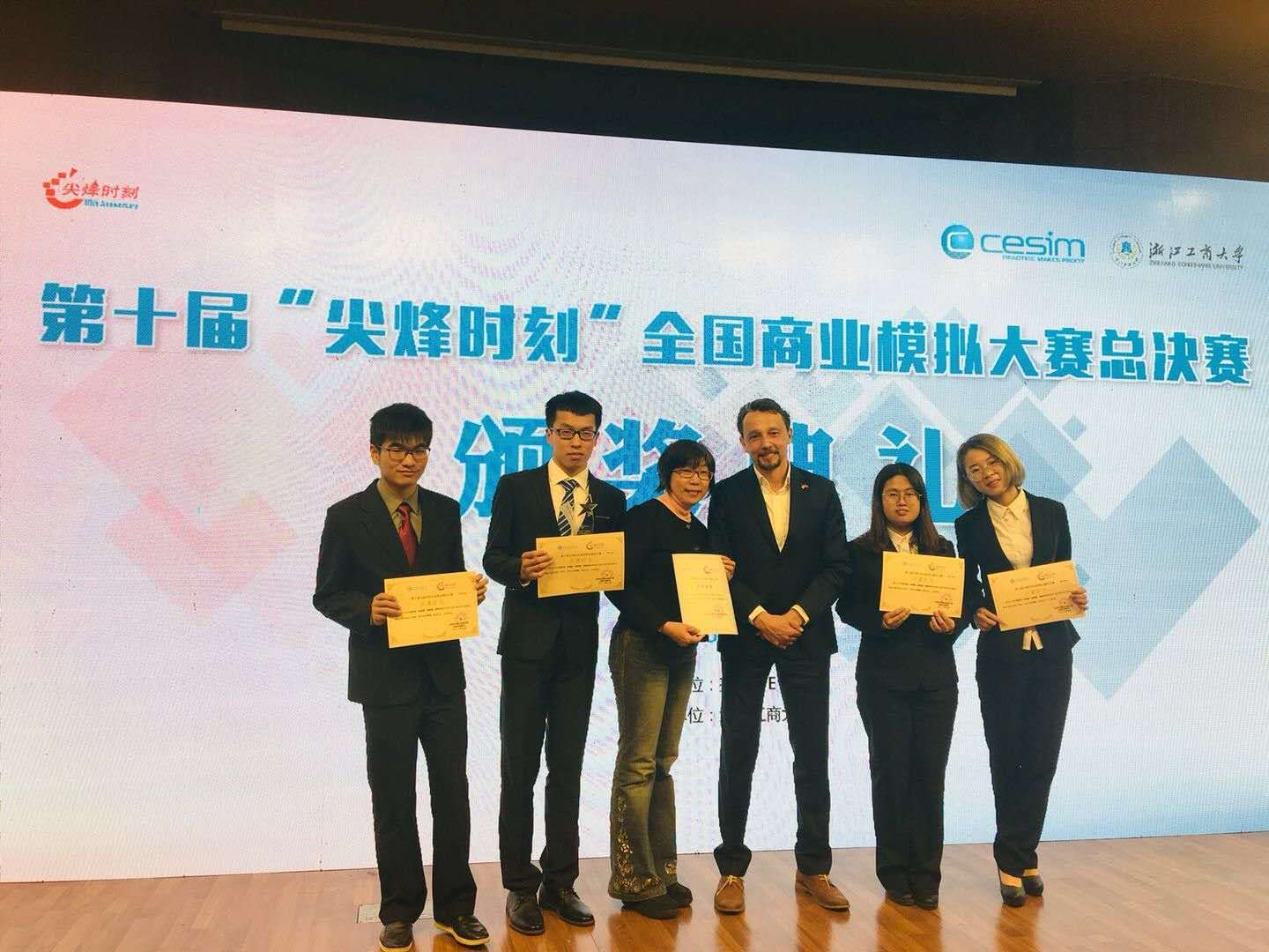 3月23日,由“尖烽时刻”中国区组委会主办,浙江工商大学承办的第十届“尖烽时刻”全国商业模拟大赛总决赛在杭州拉开帷幕。经过自2017年10月起初赛、复赛层层角逐,来自清华大学、中国人民大学、南开大学、中山大学等诸多国内高校的共 23 支本科生队伍和 18 支 MBA / 研究生队伍晋级决赛,角逐赴欧洲参加全球总决赛的入场券。历经两天的激烈角逐,新葡萄官方网管科系邢筠老师指导的“秋名山车队”获“第十届尖烽时刻全国商业模拟大赛决赛(本科生组)”二等奖。