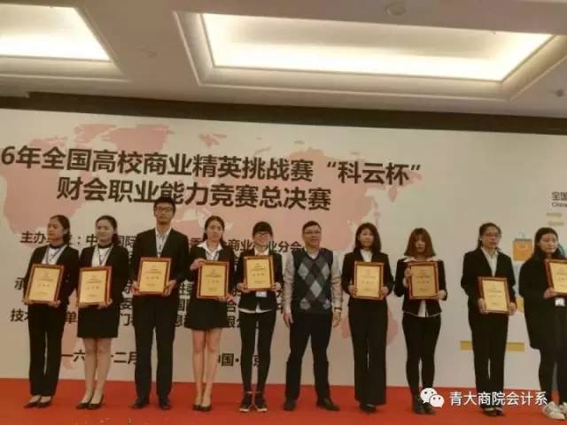 在之前11月份举行的山东总决赛中,经过初赛选拔,共有来自全省兄弟院校的63支代表队,共计189名选手进入山东省决赛。新葡萄官网会计系派出的8支参赛队伍取得4个一等奖、2个二等奖和2个三等奖的优异成绩,柳梦梦、靳灿、彭玉清、黄佳珍和胡亚雯五位同学获得总决赛个人成绩十佳称号,同时我校获得“最佳组织院校奖”。