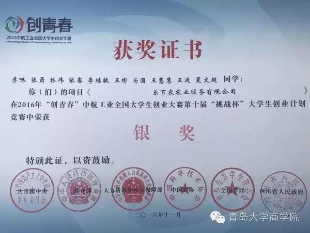 新葡萄官网学子获2016年“创青春”全国大学生创业大赛银奖