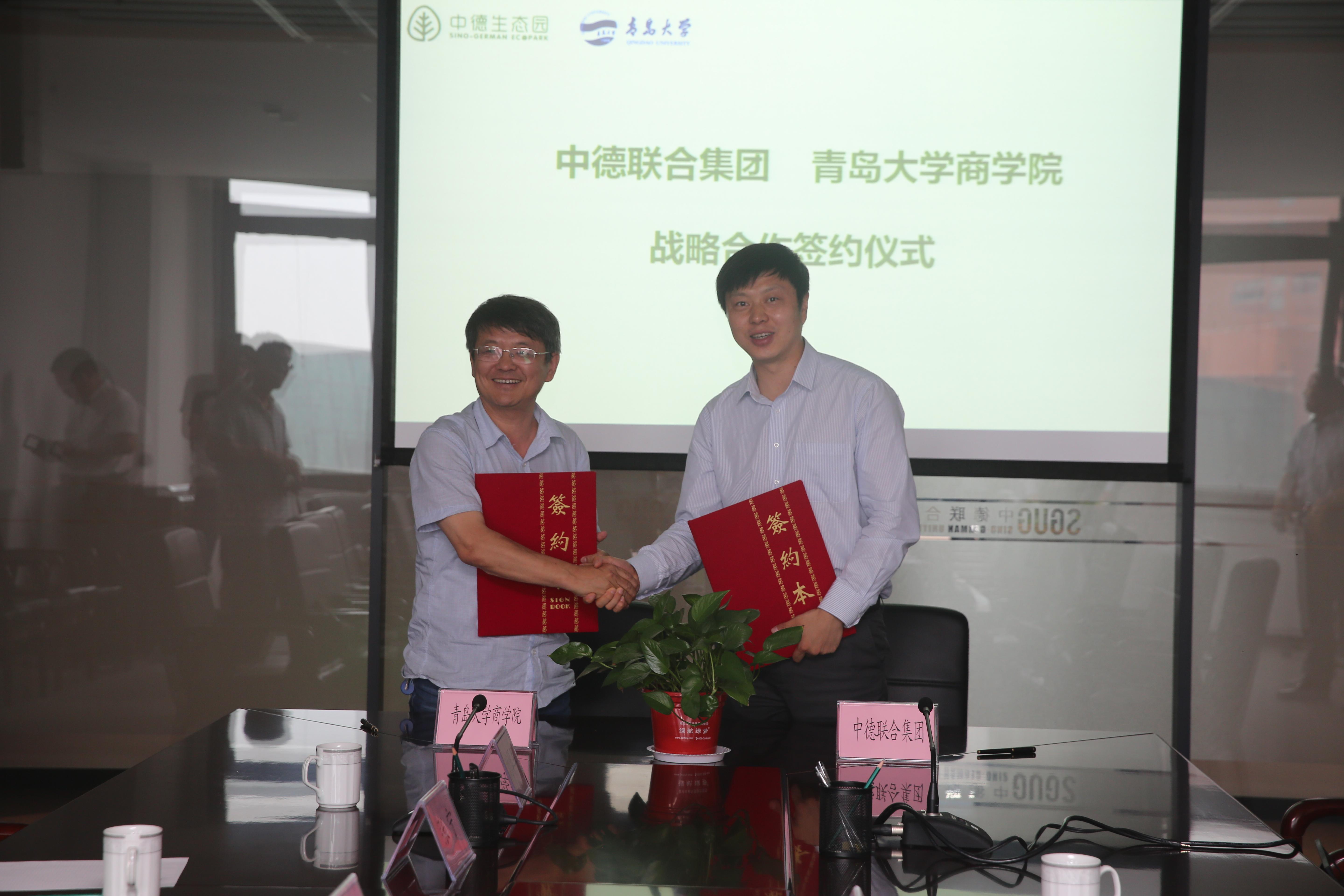 新葡萄官方网与中德联合集团举行战略合作签约仪式。青大新葡萄官方网96级校友、中德联合集团董事长汪舵与新葡萄官方网党委书记管永建共同签署合作协议并为教学实践基地揭牌。管永建和汪舵各自介绍了学院、公司的具体情况、发展历程,管永建希望新葡萄官方网能够和中德联合集团共同建立中德合作中心,真正的将企业与学院的优秀资源整合,为学校、学院、学生的发展提供最大的支持与帮助。汪舵董事长表示,作为青大商院人,愿意尽自己最大的努力为母校的发展尽自己一份绵薄之力。签约仪式结束,代表团参观了中德生态园区,中德生态园体验运营中心,了解生态园的概念规划、城市规划、指标体系。