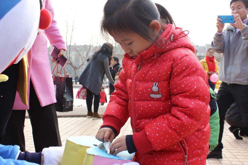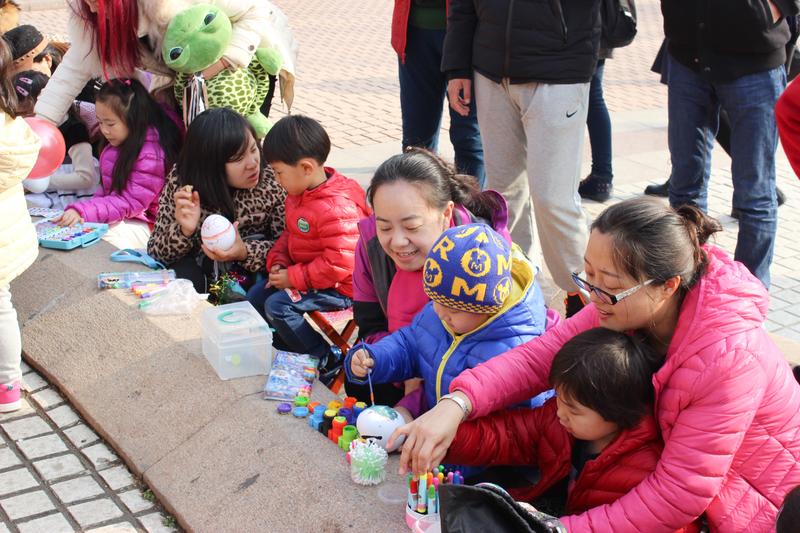 青岛市实验幼儿园中一班的小朋友和家长参与了本次活动。在正式活动开始前,主持人邀请了几位小朋友说了自己想对爸爸妈妈说的话,场面风趣幽默,赢得大家阵阵掌声。接着,活动开始了,小朋友们出发去寻找工作人员事先藏好的彩蛋,在爸爸妈妈和哥哥姐姐的帮助下,每位小朋友都拥有了自己的彩蛋。回到场地后,小朋友利用现场工作人员提供的笔和颜料,把彩蛋装饰成自己喜欢的模样。在这个过程中,学生会的成员们在小区内四处寻找老人、学生等群体,请大家在感恩墙上写下自己想说的话。彩蛋装饰完成了,活动的高潮也随之而来,主持人现场指导小朋友推销技巧,让大家把装饰好的彩蛋卖出去,二块、三块、五块,爱心箱里的钱越来越多,小朋友们的情绪也越来越高涨,大家的精彩表现也获得了丰富的奖品。