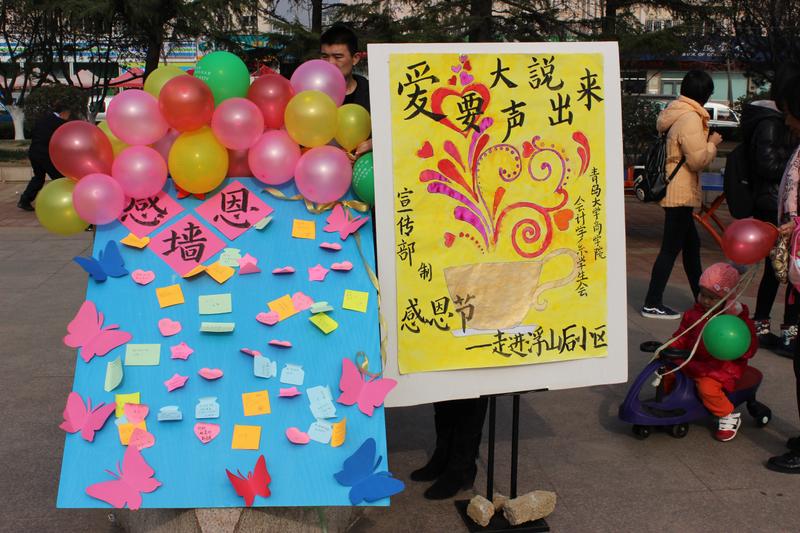 由新葡萄官方网会计学系学生会主办的《把爱大声说出来》感恩节活动于2015年11月29号在浮山后小区举办。