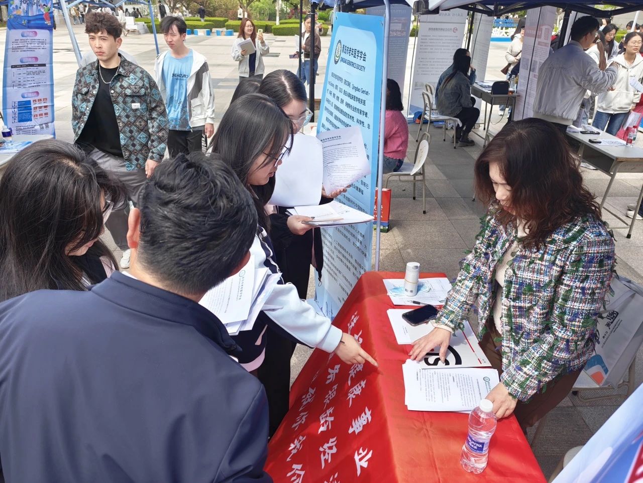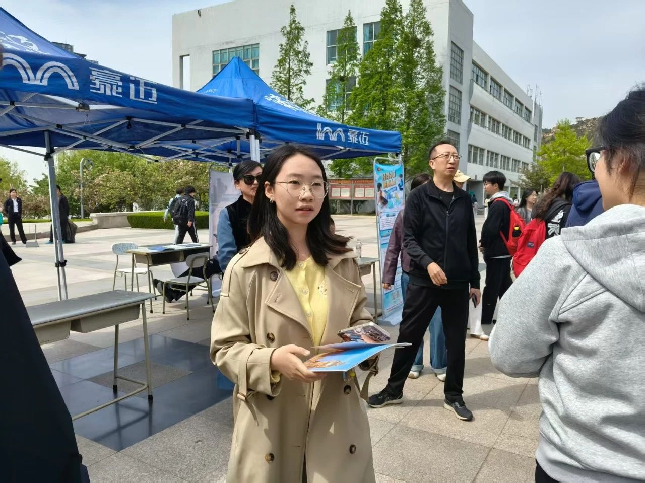 本次双选会吸引了金家岭校区500余名毕业生前来参会。招聘展位前人头攒动,翻看阅历的声音与HR的讲解声交织成一片,学生们自信展示自身优势与求职期望,就关心的问题深入咨询,现场氛围火热!