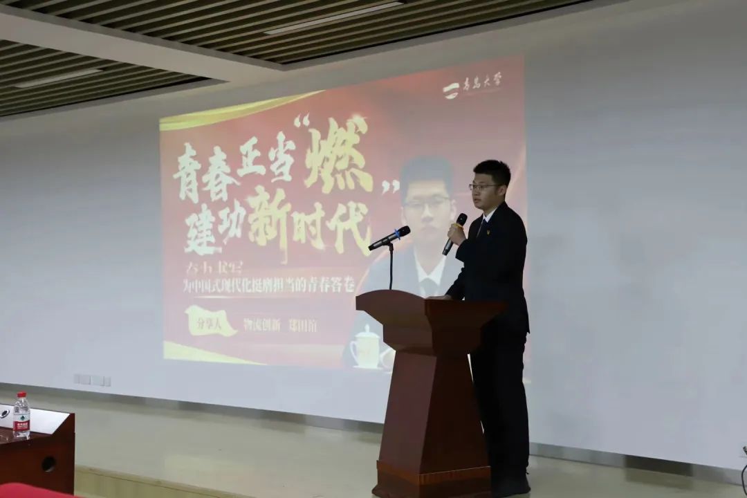 毕业生党员郑田谊、亓浩作为代表分享自己四年来以党旗为引领,在勤学笃行中淬炼初心、于躬身实践中校准航向的体验和经历。从入党宣誓时的青涩面庞到志愿服务中的汗湿衣襟,从深夜自习室的求知目光到学生工作中的挑灯夜战,每一帧都映照着青春与信仰的同频生长。