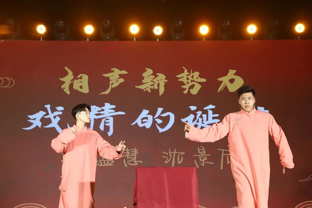 16级的学姐杜蕴慧和18级的沈景欣同学的相声给大家带来了好多欢乐,赢得阵阵热烈的掌声,节目最后的熟悉的旋律更是引发全场大合唱。“去年的快乐今年补回来,去年的遗憾今年补回来”学姐的这番话引起了多少人的回忆,相信每一位16级的同学毕业虽有遗憾,但现在都拥有自己想要的未来。
