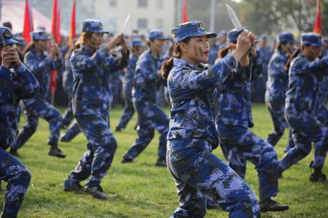 由新葡萄官方网新生组成的方队迈着整齐而坚定的步伐走过主席台,他们军容整肃、口号嘹亮,彰显了新生自强不息、立志报国的壮志豪情。内务整理及紧急集合、女子匕首格斗术、擒敌拳、战术和战地救护等训练科目的演示,体现了军训塑造的良好风貌,赢得了现场观众的阵阵掌声。