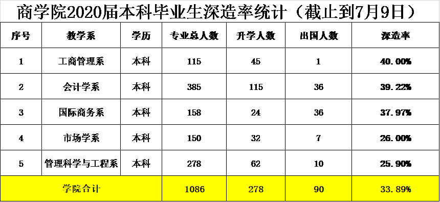 以下为新葡萄官方网2020级本科毕业生深造率统计及各系学生具体深造情况: