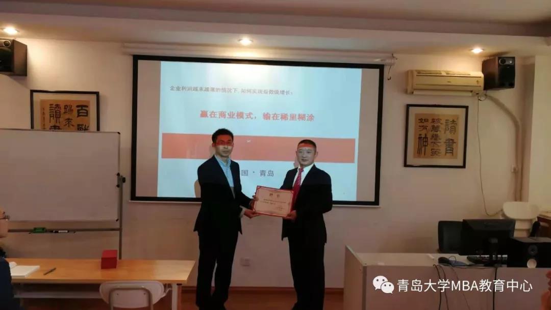 MBA中心副主任李金克教授代表全体同学对罗老师一行的到来表示了热烈欢迎,并为罗老师颁发了新葡萄官方网MBA校外导师聘任证书。