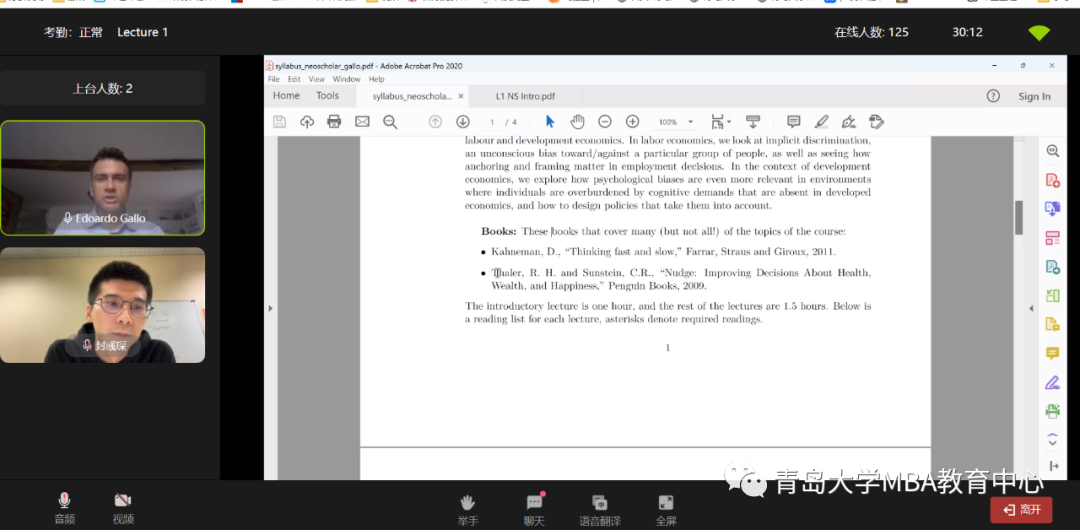 《领导力与组织人才管理-塑造领导力的核心准则》课程于10月14号正式开课,而《人类生活中消费等经济行为的心理学原理-行为经济学导论》于10月18号正式开课。两位教授知识渊博,平易近人且风趣幽默,授课方式采用英文讲授中文字幕,他们的上课课堂氛围愉悦,让同学们在轻松的氛围内学习到知识,教授在上课之前都会强调,如果在课程中有任何问题,可以随时举手进行提问,这种随时答疑解惑的教学态度给同学留下了深刻的印象,此外,两位教授总能了解到同学们的需求,对同学们提出的问题一一解惑,教授严谨的教学态度受到同学们一致好评,在课程结束时大家纷纷留言表达对教授的感谢。